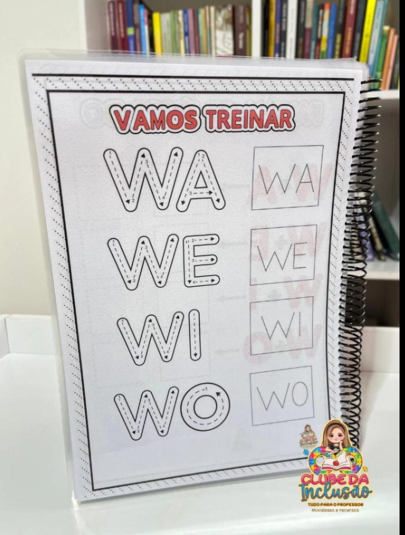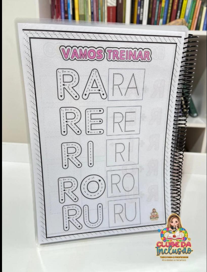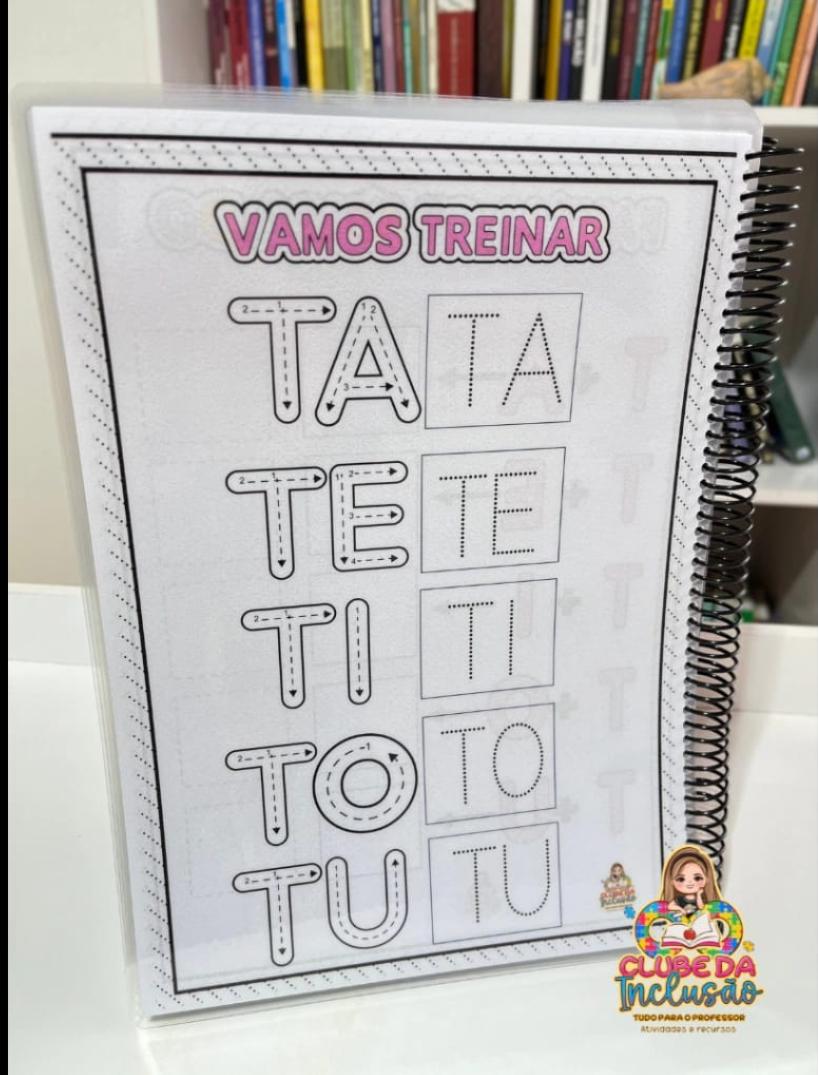📒Cada letra é apresentada com atividades que estimulam o traçado, o reconhecimento e a associação com imagens.