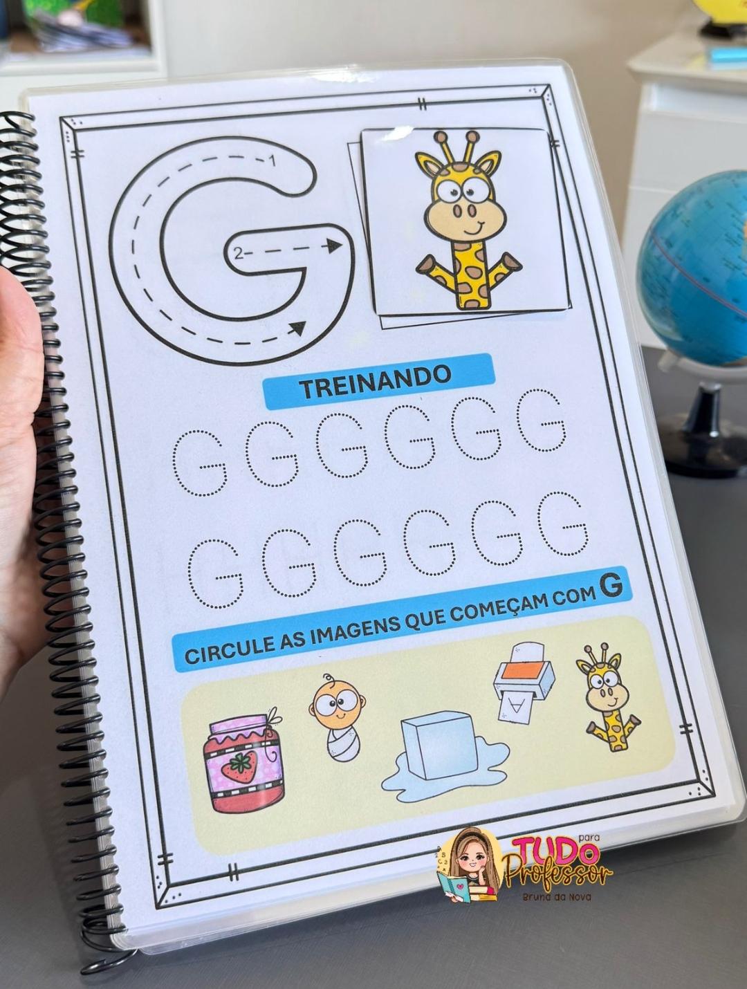 📒 Cada letra é apresentada com atividades que estimulam o traçado, o reconhecimento e a associação com imagens.