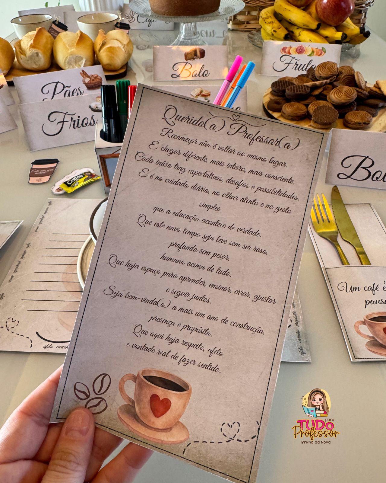 Um kit de mesa posta para recepcionar os Professores com muito acolhimento, escuta e significado.