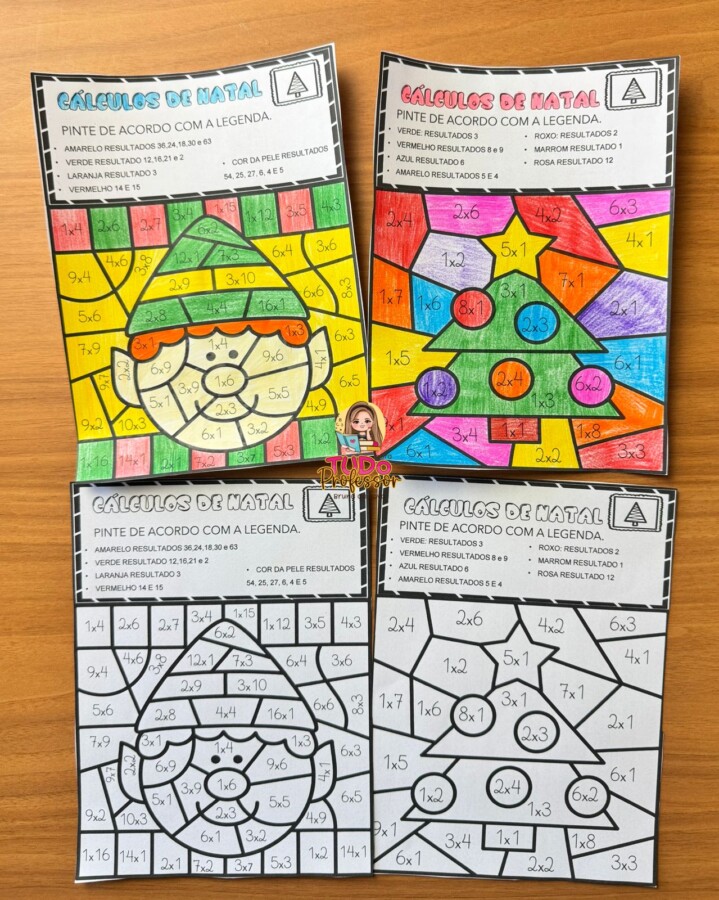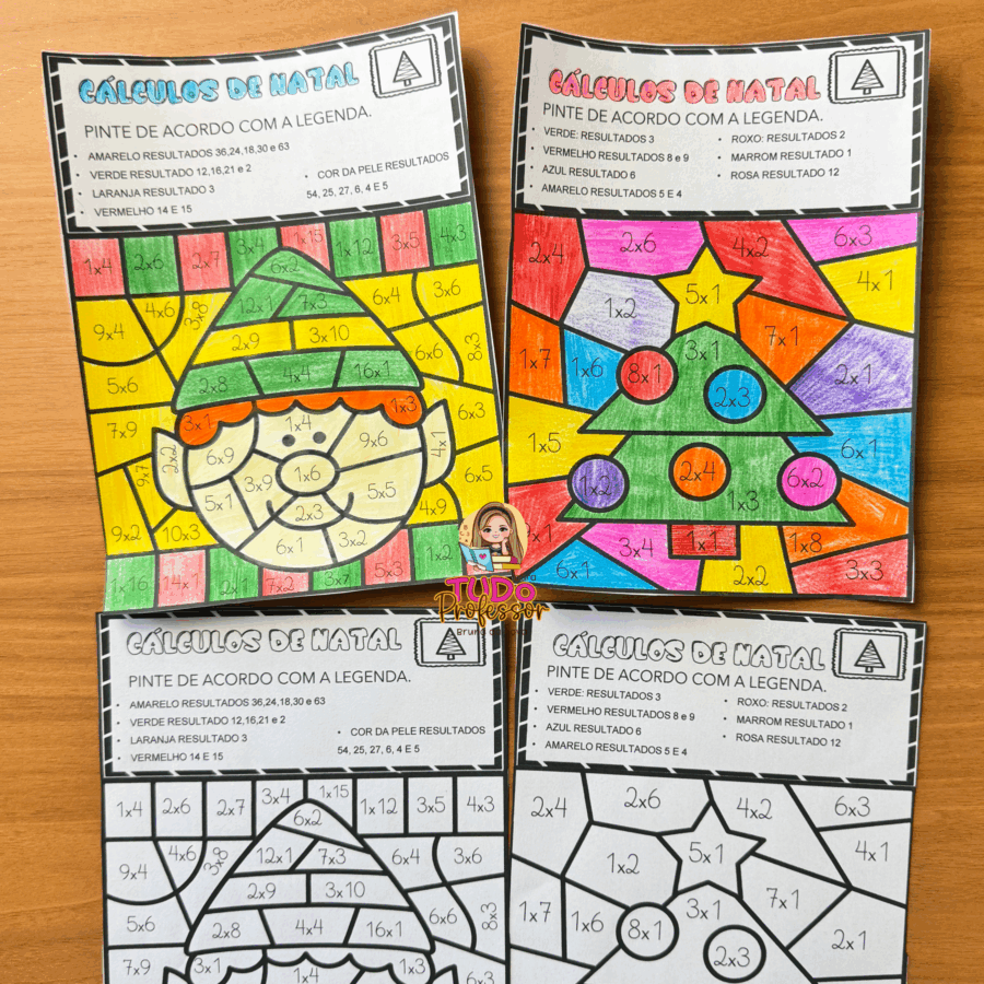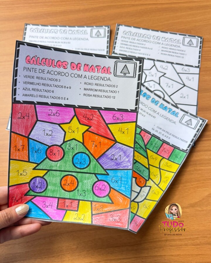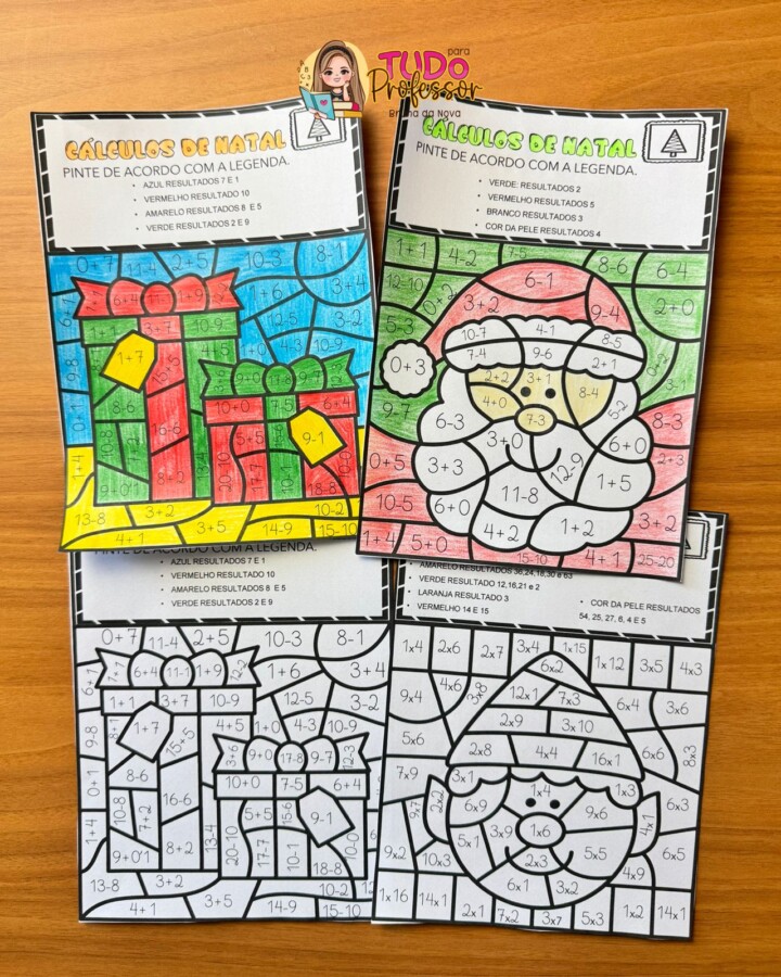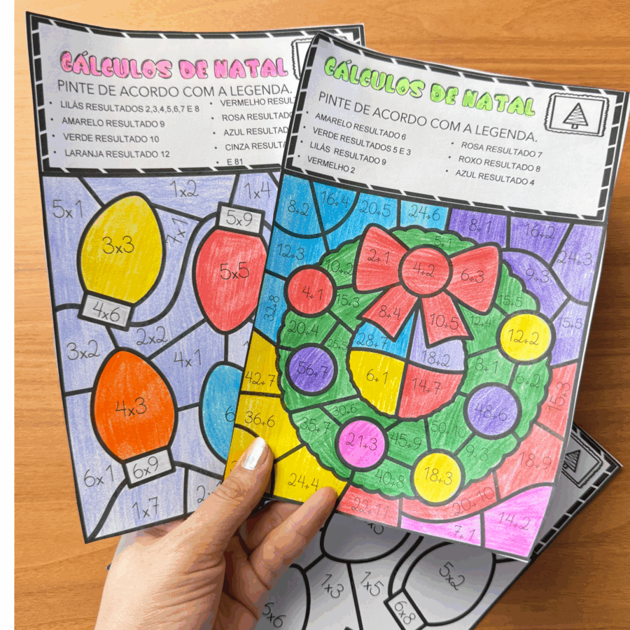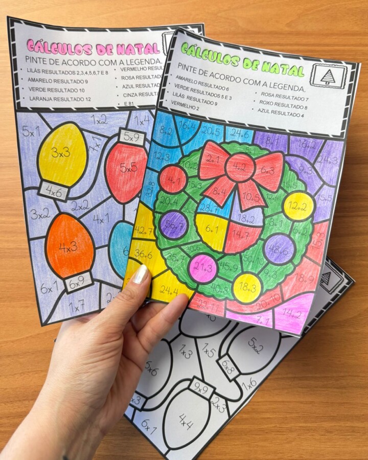 Ao mesmo tempo em que os alunos reforçam as operações básicas, eles se encantam com as guirlandas e ilustrações natalinas, pintando conforme o resultado de cada cálculo.