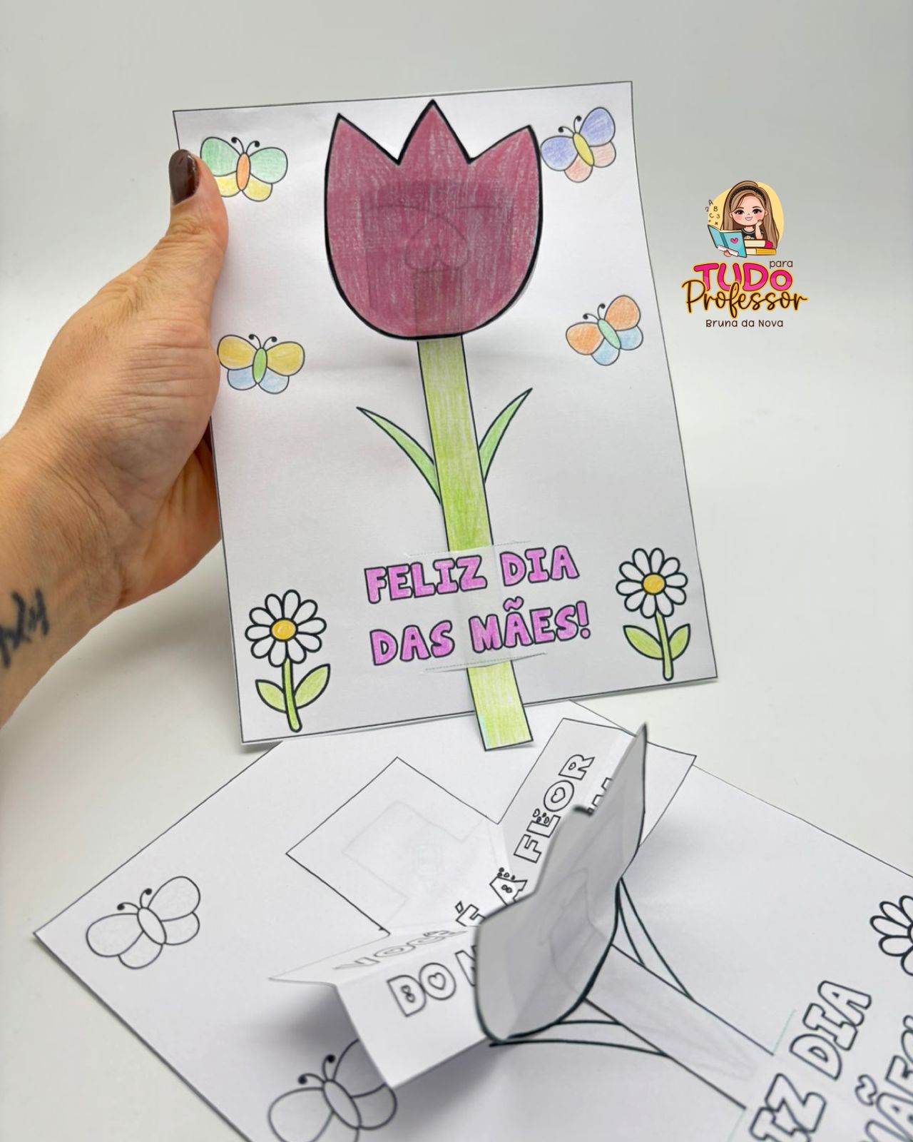 Cartão interativo para presentear a mamãe. Material em preto e branco pronto para impressão.