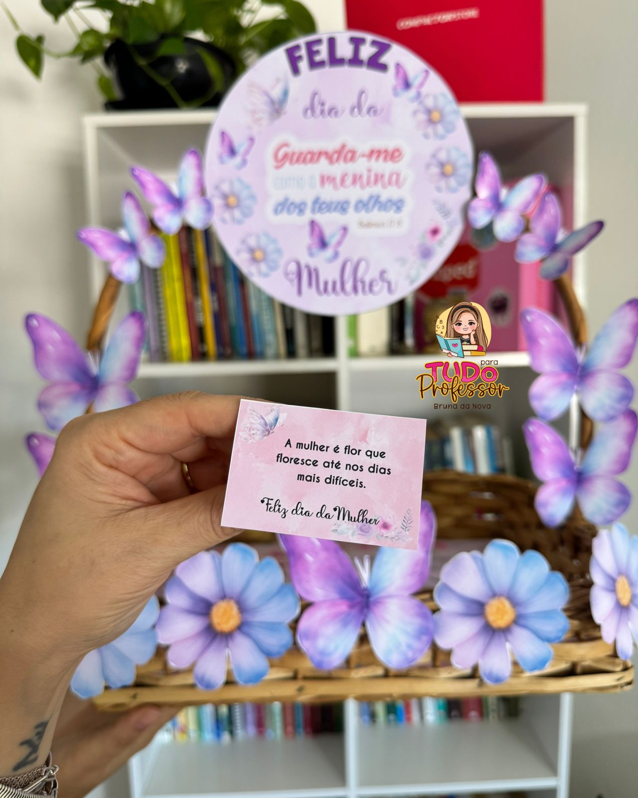 Para celebrar o dia 8 de março dia da Mulher. No arquivo você receberá 72 mensagens editáveis, uma placa de feliz dia da Mulher com uma mensagens e elementos para decorar a cesta.