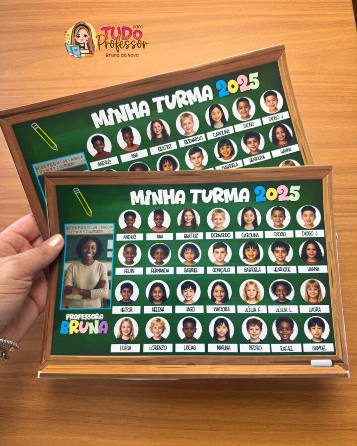 Uma lembrança para eternizar sua turma de 2025. Material editável pra colocar as fotos dos alunos, da professora e os nomes