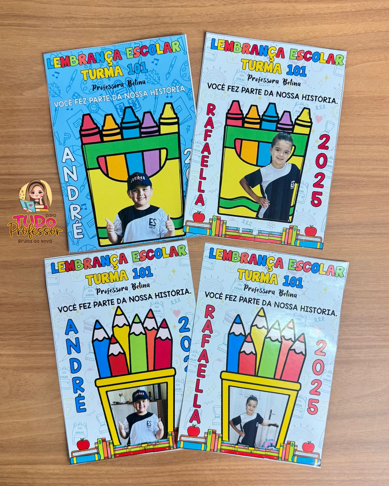 Um kit com 18 modelos de lembrancinhas para presentear os alunos no final do ano.