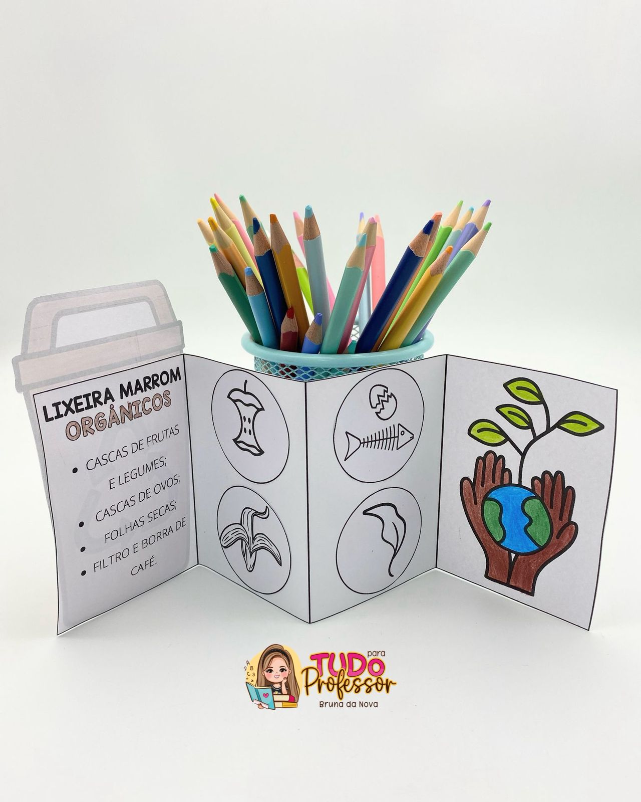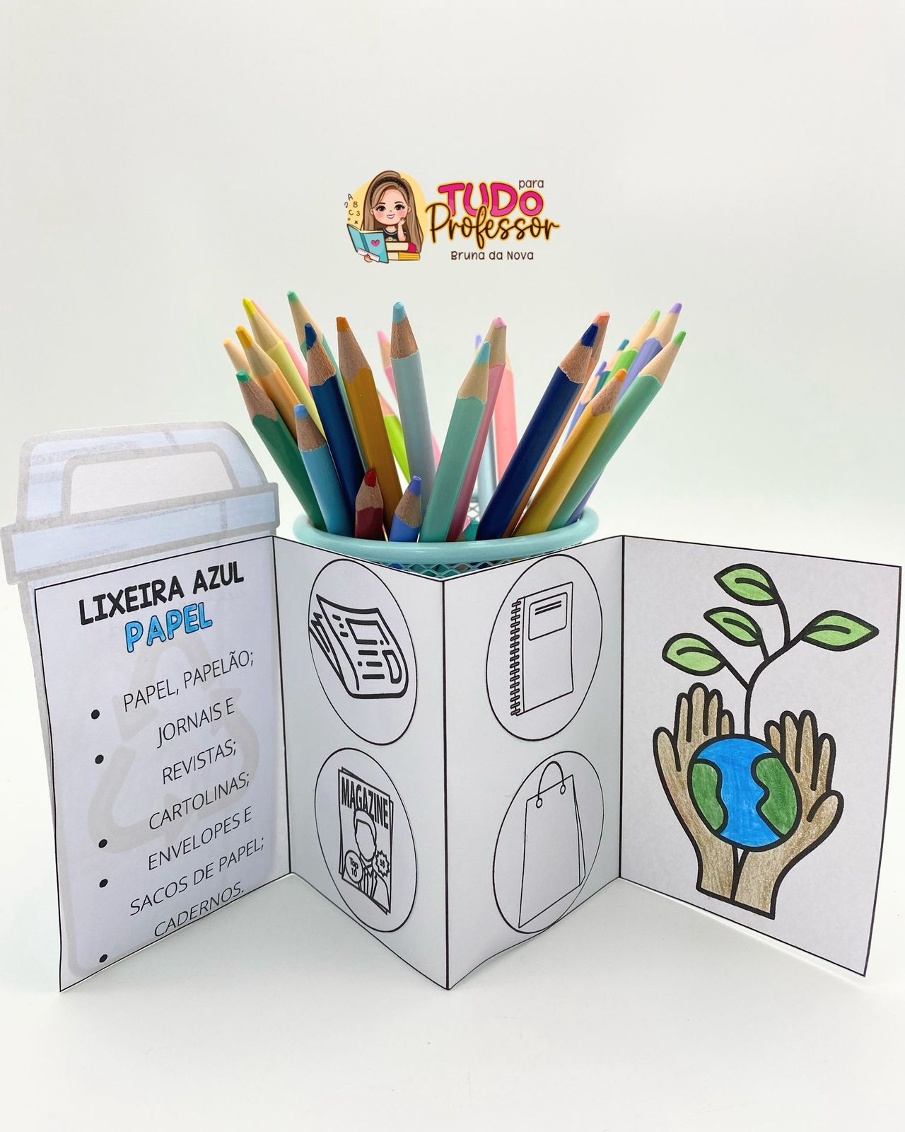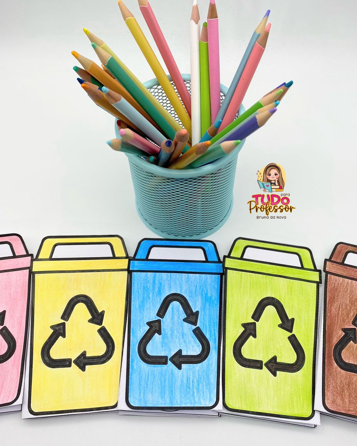 💚 Arte para os 5 mini livros das lixeiras de reciclagem