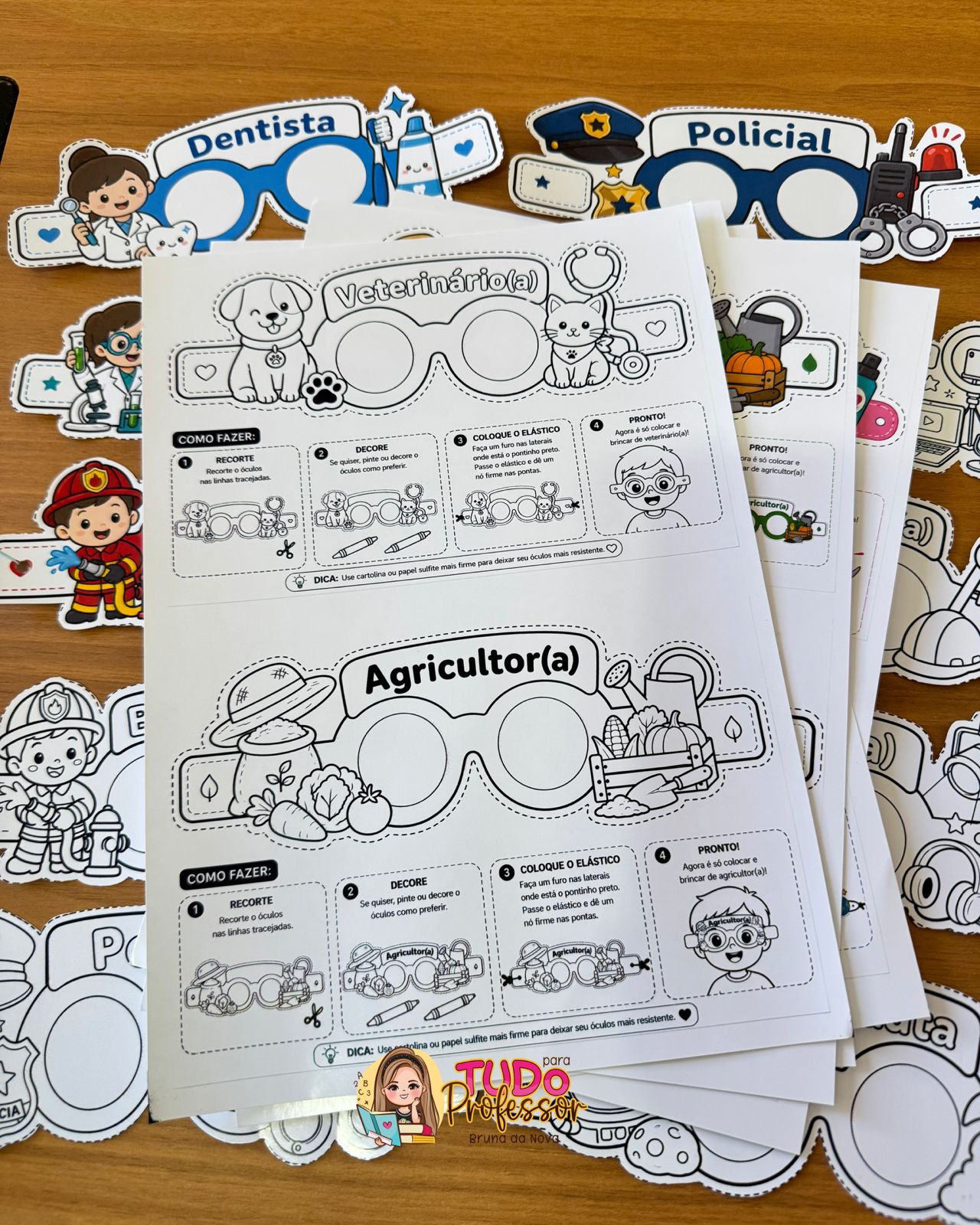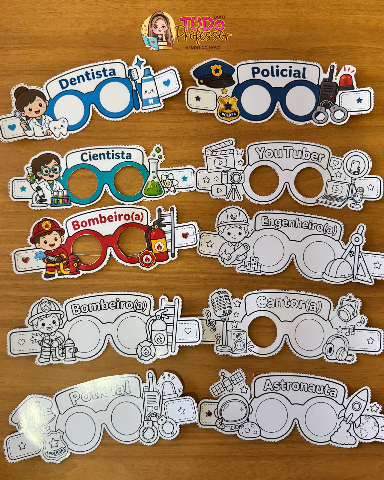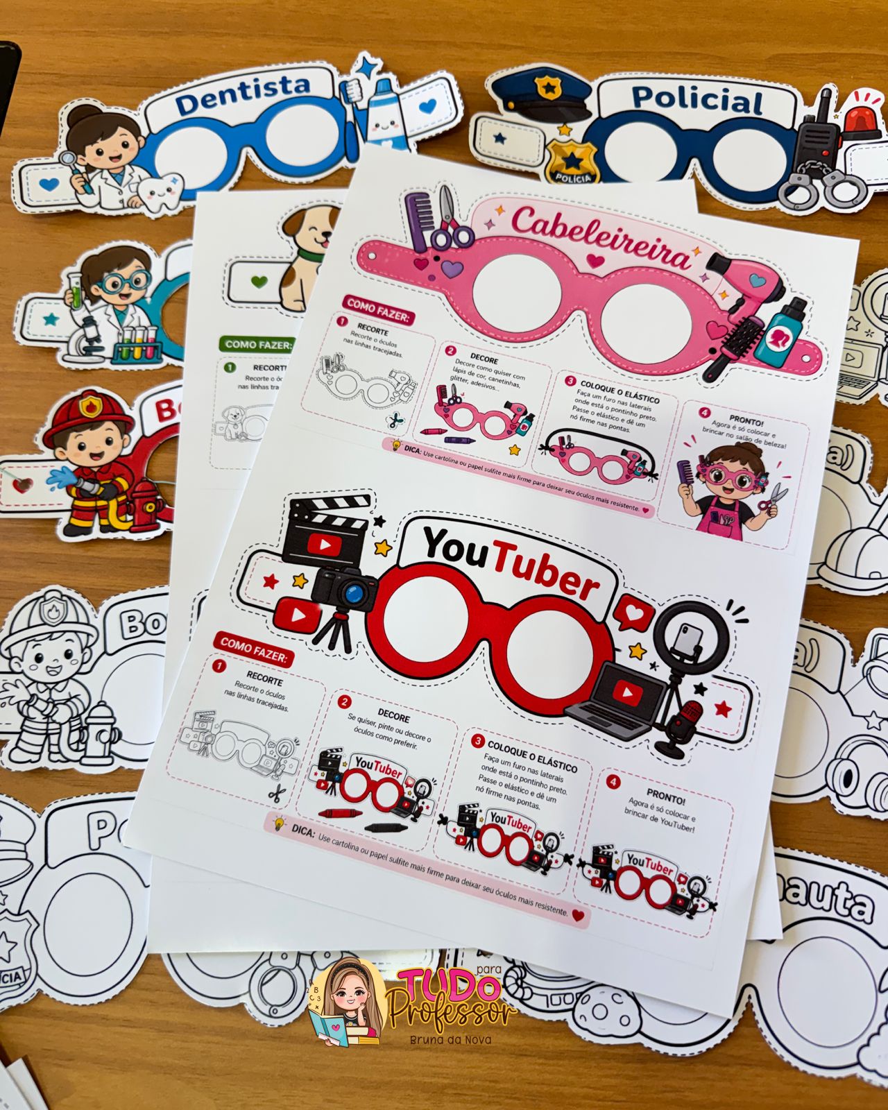 São 13 profissões diferentes, cada uma com um óculos super estiloso e cheio de detalhes: