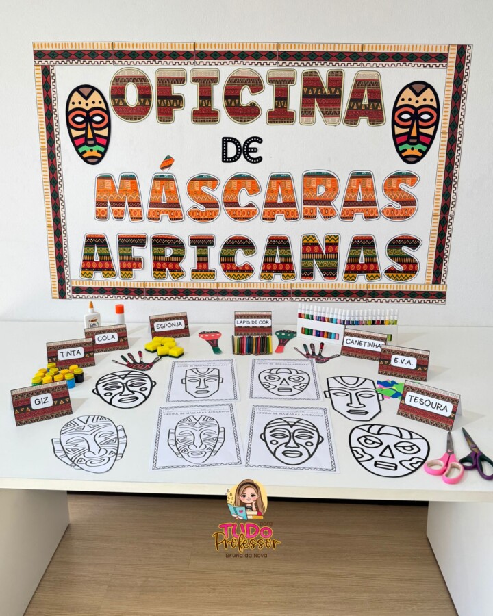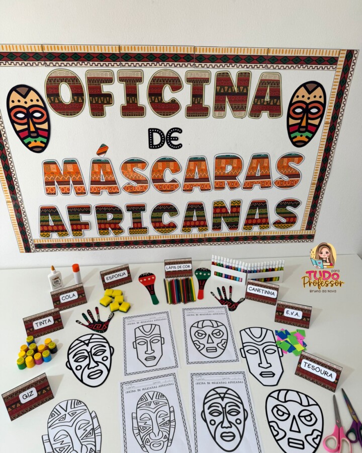 Você receberá um plano de aula completo para educação infantil e anos iniciais com todos os códigos da BNCC; tags dos materiais utilizados, painel e máscaras. Tudo pronto para imprimir.
