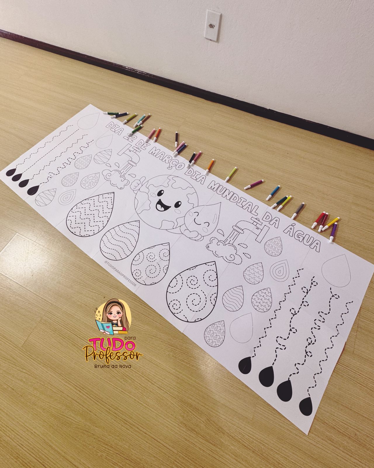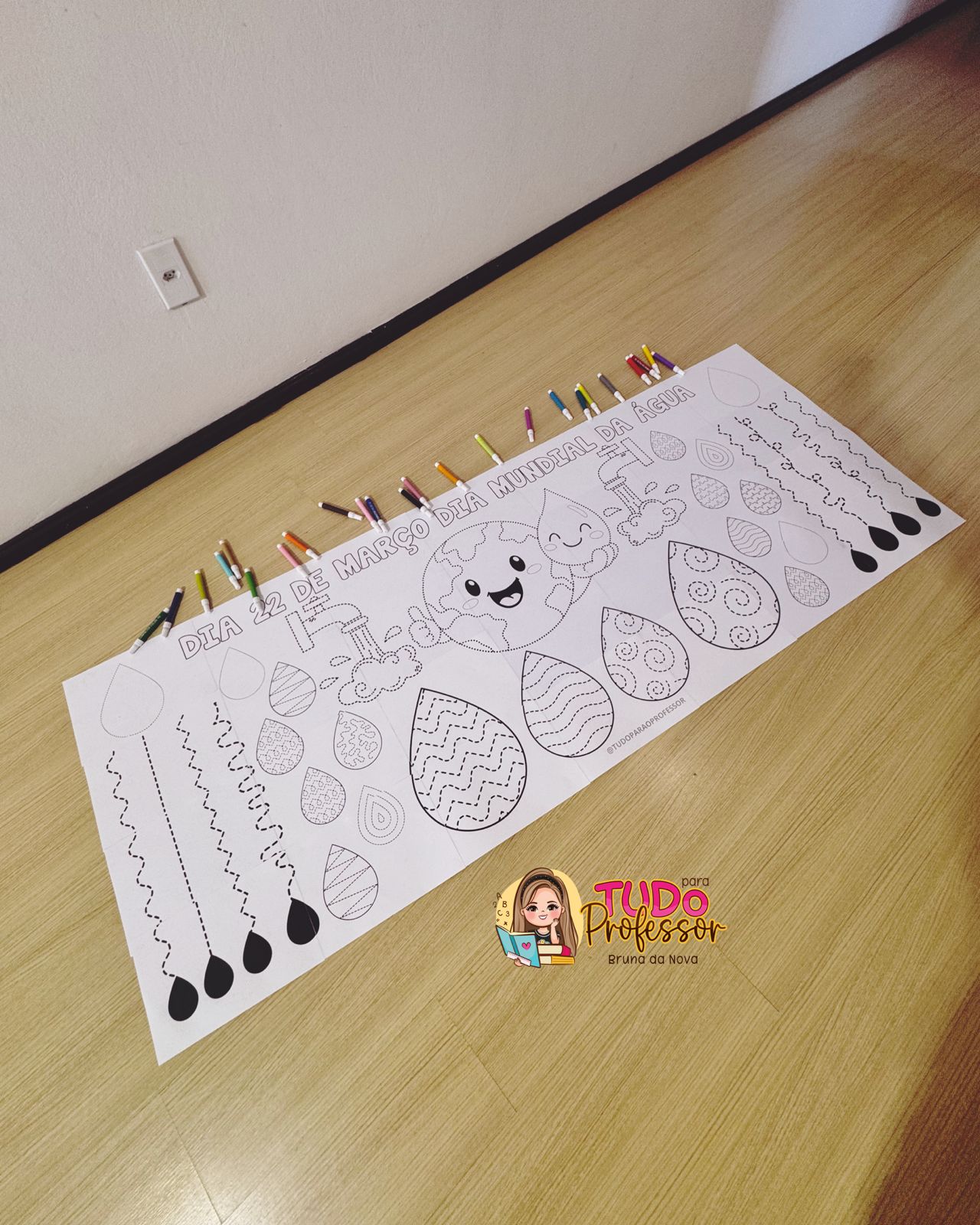 💦 Um recurso pedagógico que desenvolve a coordenação motora fina, atenção e concentração dos seus alunos. 💦 O painel contém 28 folhas, é em preto e branco, ampliado, medindo aproximadamente 1,98 de largura por 77cm de altura.