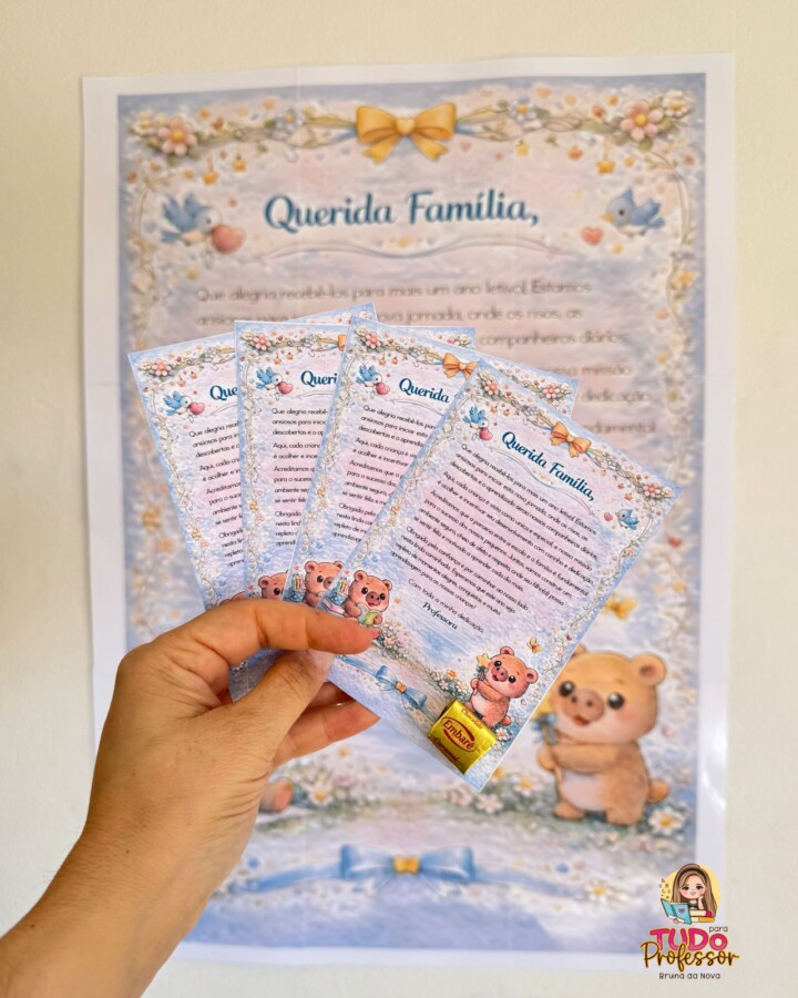 Nada de bilhete frio. Aqui, cada detalhe comunica pertencimento, carinho e intenção pedagógica.