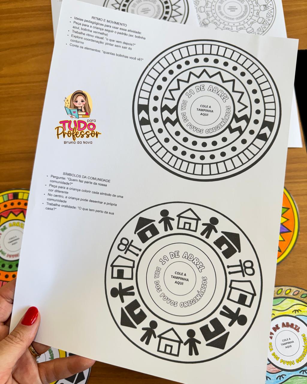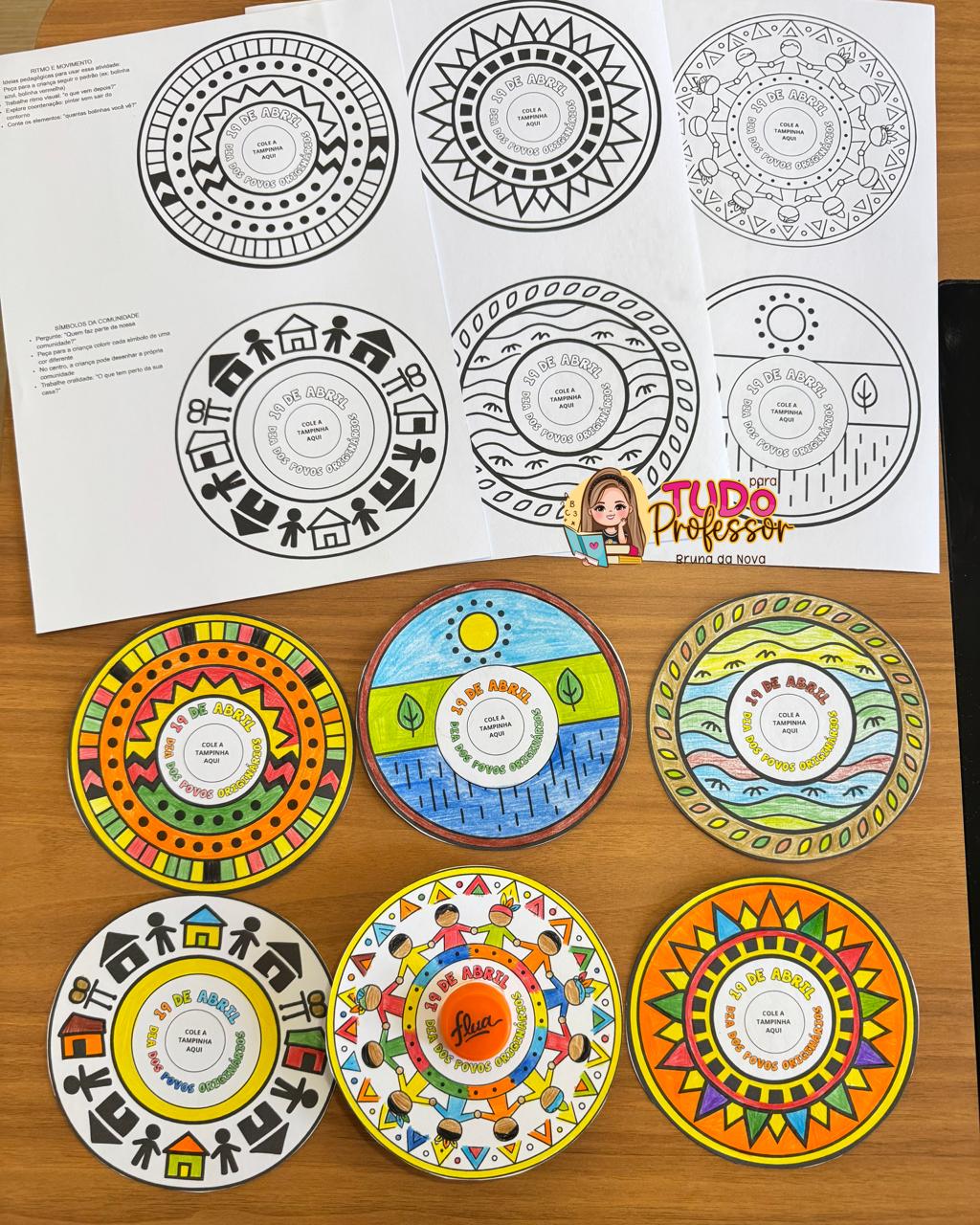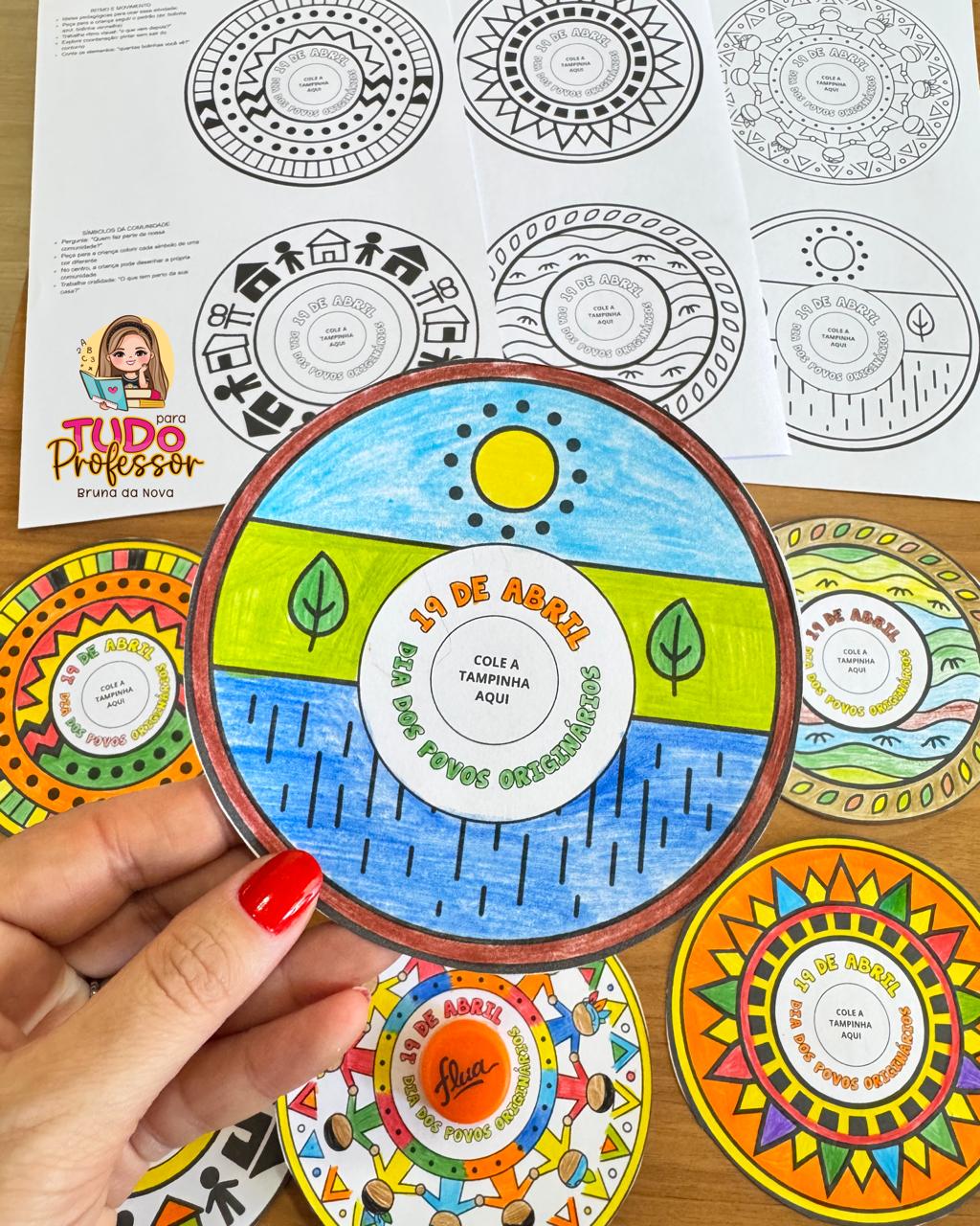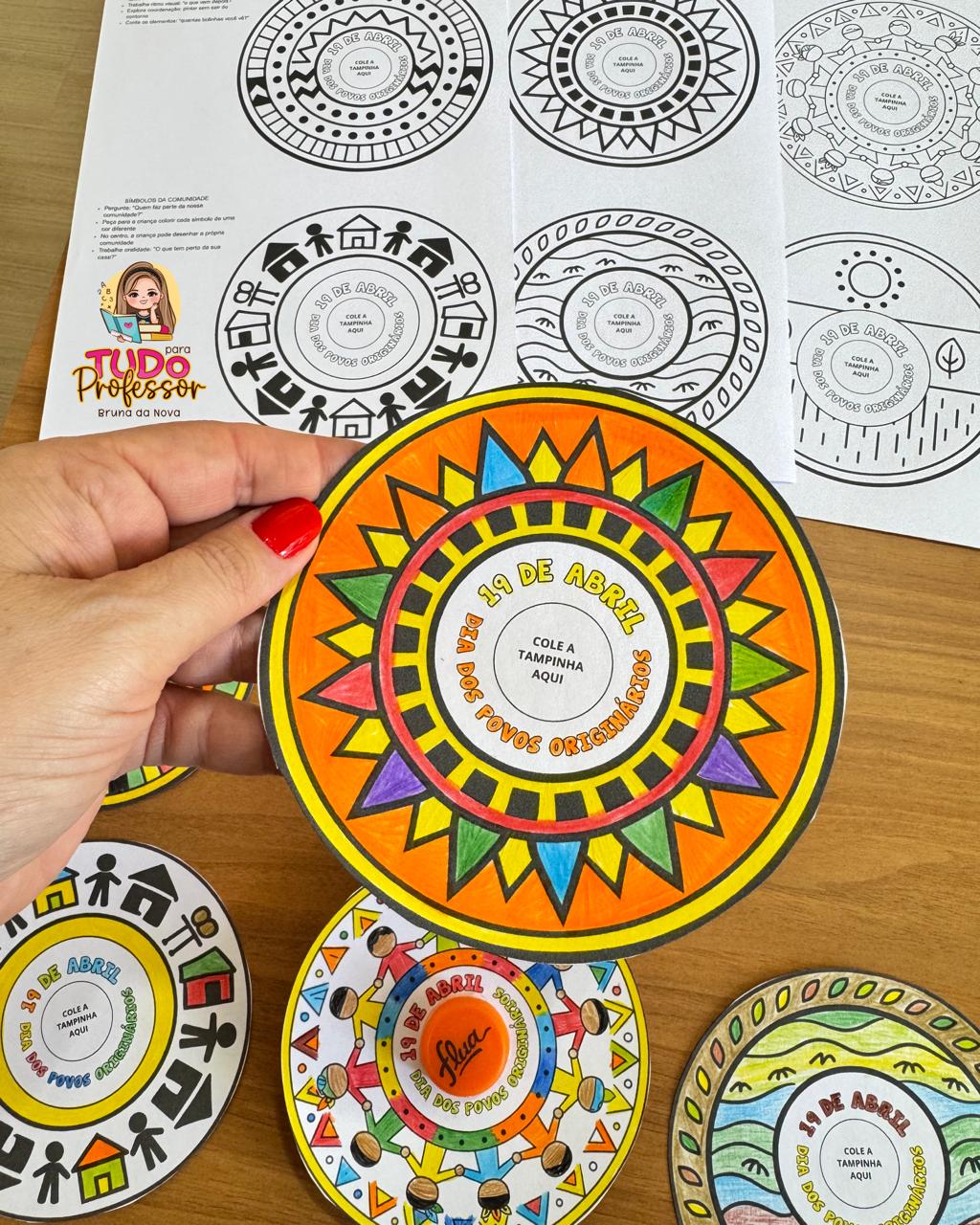 ✅ Recorte, cole uma tampinha no centro e pronto: um brinquedo com cultura, arte e aprendizado!