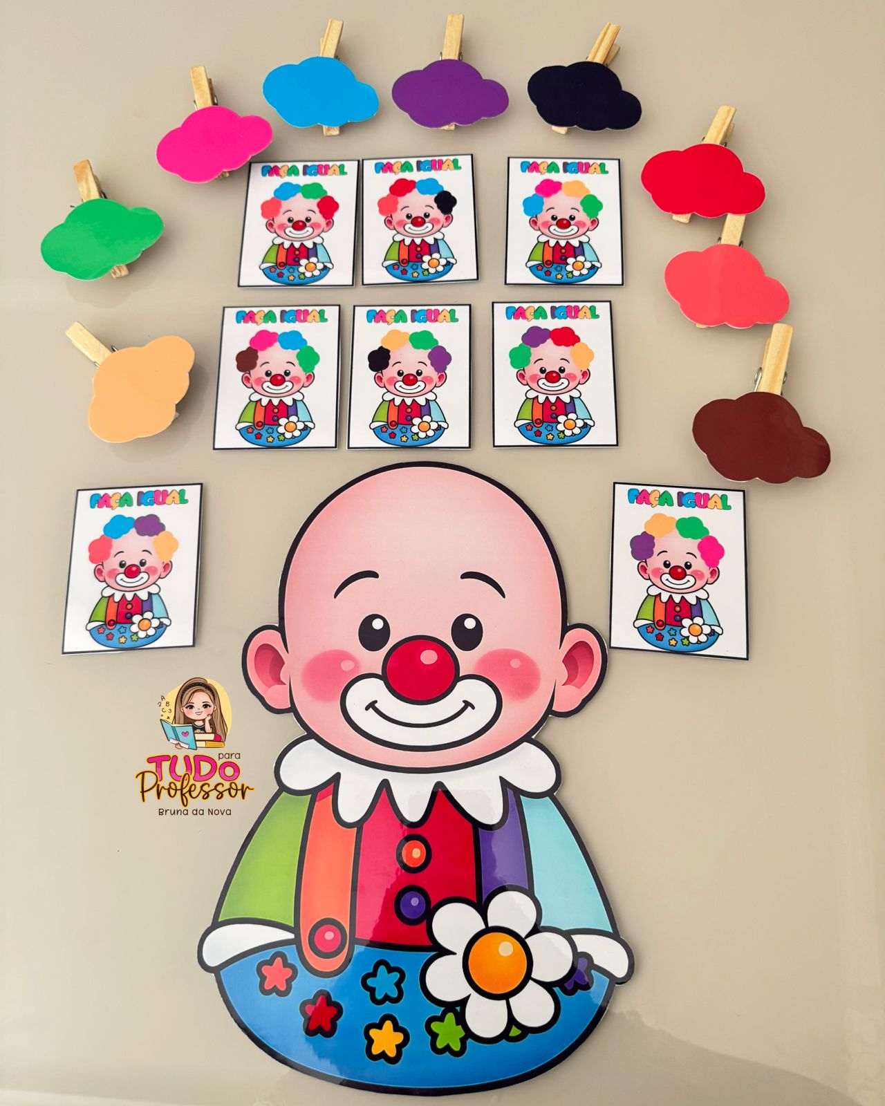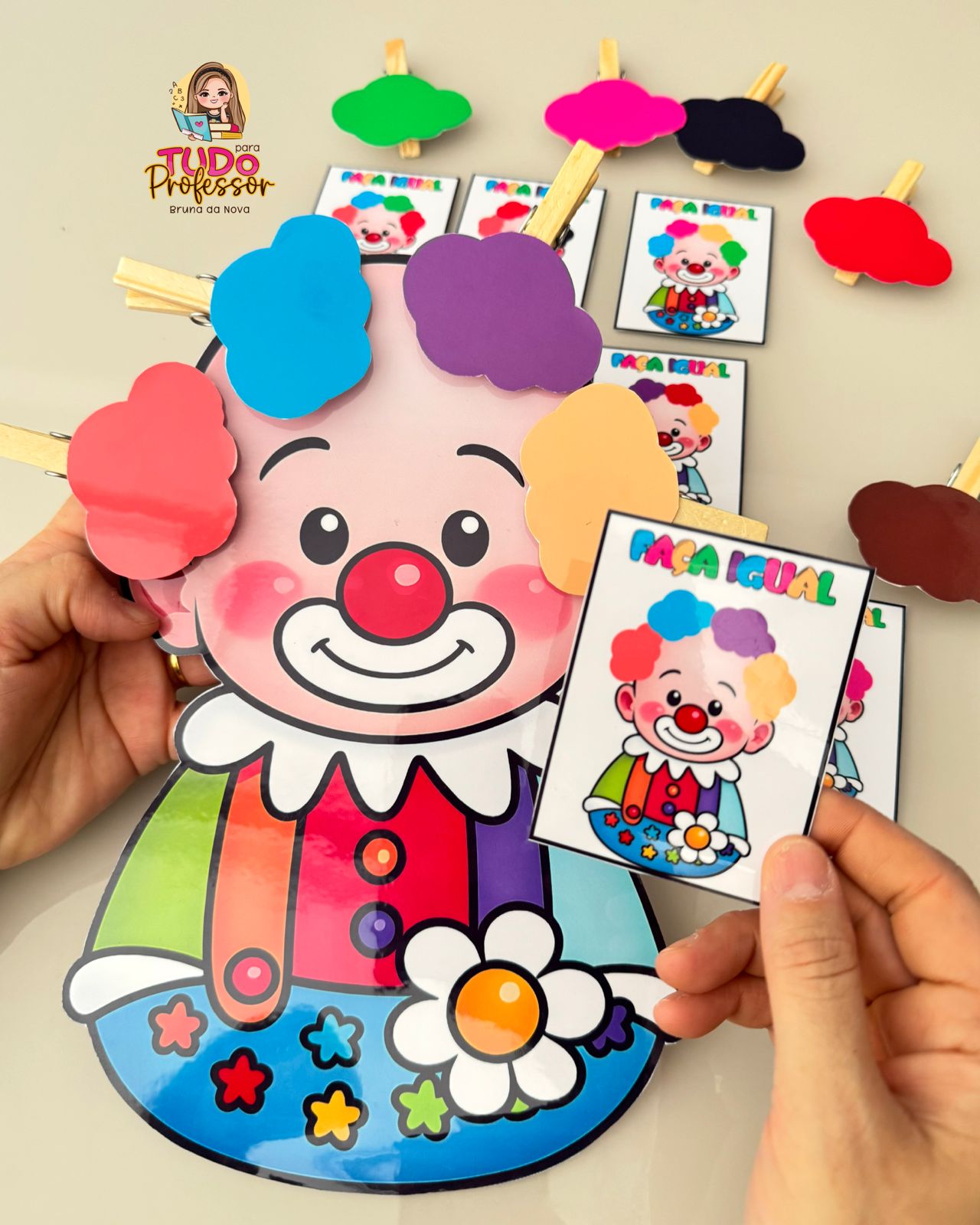 🎪 Indicamos plastificar todo material e os cabelos colar em prendedores.