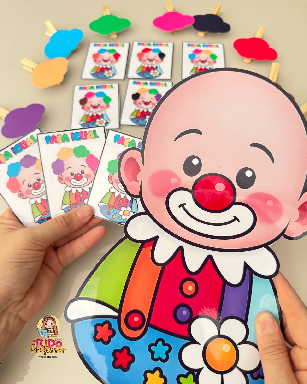 🎪 o material é composto por: um palhaço, 8 modelos de sequência e 32 cabelinhos.
